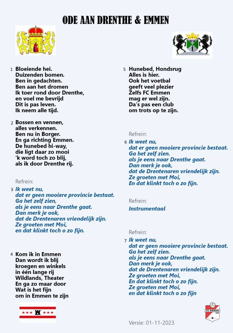 Nadat in December 2023 mijn single "ODE AAN FC EMMEN" was uitgebracht werden de resultaten van FC Emmen helaas steeds minder. Zong ik aanvankelijk dat we voor het kampioenschap zouden gaan maar al snel bleek dat dit een utopie was. Inmiddels zijn de resultaten erg wisselend en is er een plek in de middenmoot. Daar mijn Ode aan FC Emmen in de supportersbussen vaak werd gedraaid leek het mij zinvol om een remix te maken met wat actuelere gematigde verwachtingen. FC Emmen strijd nu altijd zonder veel gezeur voor het beste resultaat. KOP D'R VEUR !!