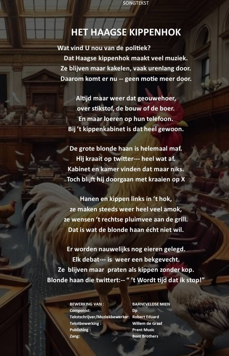 Een superleuk nummer met hilarische tekst hoe het eraan toegaat in de 2e kamer,